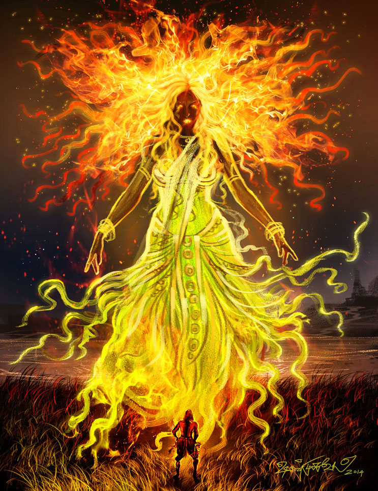 “வேண்டாம்” என அஞ்சியபடிச் சொல்லி துரோணர் மேலும் பின்னடைந்தார். அவள் ஒளியில் அவரது நிழல்கள் பின்னால் விரிந்தெழுந்தன. ஒவ்வொருவராக தோற்றம் பெற்றெழுந்த நிழல்வடிவர்கள் மின்னும் கண்களுடன் பெருகிவிரிந்தனர். அவர்களின் ஒற்றைப்பெருங்குரல் எழுந்தது. ‘தீ! எங்களுக்குத் தீ வேண்டும்!’ துரோணர் “இல்லை… அதை நான் கோரவில்லை” என்று தடுமாறும் குரலில் சொல்ல அவரைச்சூழ்ந்து அக்குரல் மேலும் எழுந்தது. “இவனுள் ஓடும் காயத்ரிக்கு அனல்சிறகுகள் முளைக்கட்டும். அவள் தொட்ட இடங்கள் எரியட்டும்!” அன்னை “அவ்வாறே ஆகுக!” என்றாள்.